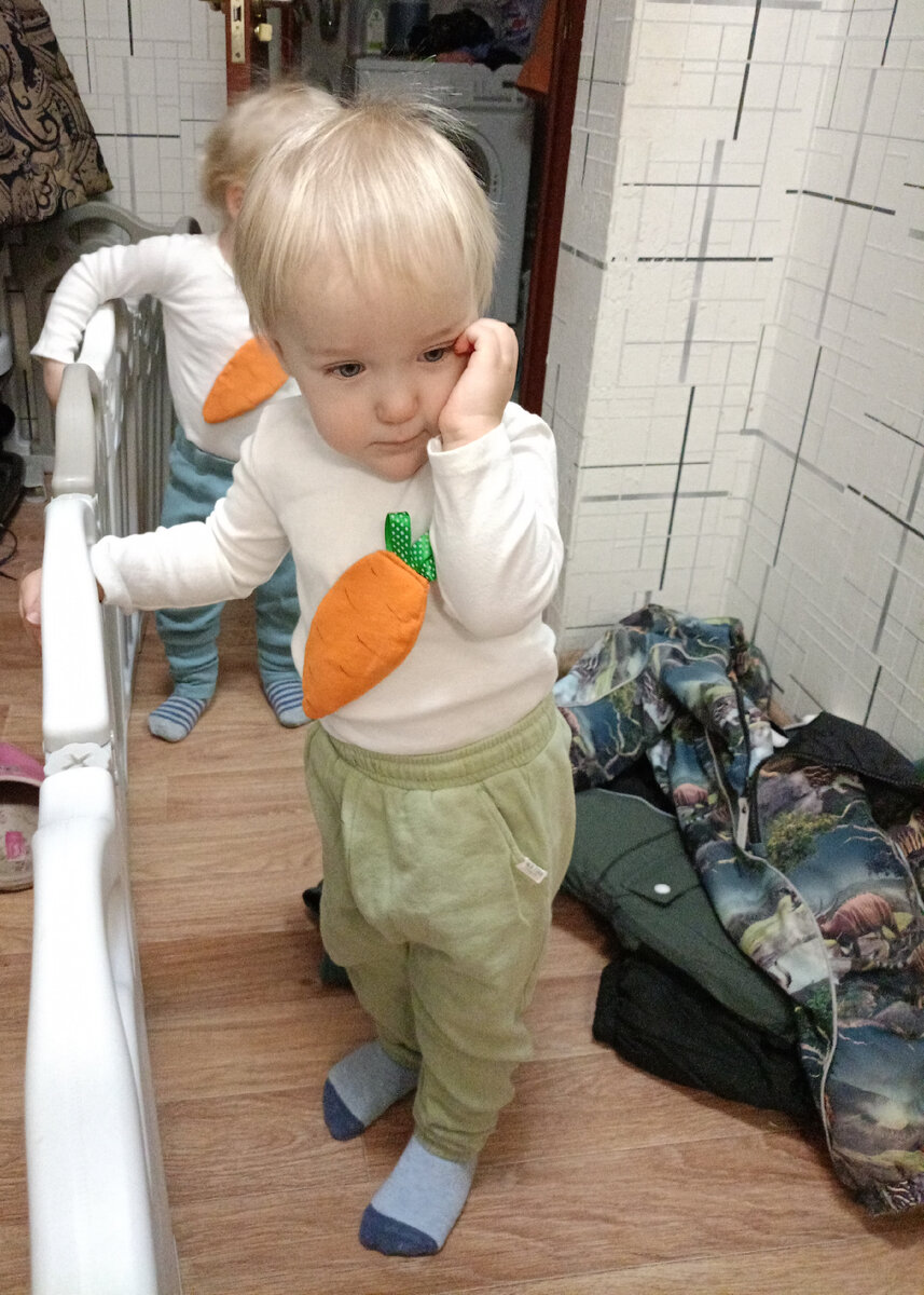 Всю ночь мать переживала, чтобы все проснулись здоровыми и сходили таки на утренник, к которому особенно готовилась мама, пошивая в несколько заходов два костюма. Но мыслить надо позитивно. И даже если бы до сада мы не дошли, то план Б был нарядить ёлку, и скакать вокруг неё в костюмах. Да и на Новый год наряжу малышню в зайчат. Несмотря на то, что уснули дети вчера в 20 и 20:30 ,мне все равно пришлось их будить.. Суслики В садике сказали сразу обрядить детей в костюмы, потому что праздник сразу после завтрака. Верх мы одели прям дома. Дети были счастливы носить морковь на пузе, поэтому сборы прошли гладко. Пришли мы в садик, а тааам... Салон красоты, не иначе! У нас группа прям девчачья. Стоят человек шесть красоток и мамы над ними колдуют-одевают, прическу делают. Мы скоромно притулились на стульчик. И переодевала я каждого на руках. Первого Марсельку. Леон в это время на удивление стоял молча и ждал. У нашей красотки-соседки был телефон в руках и мальчики подглядывали туда, спас