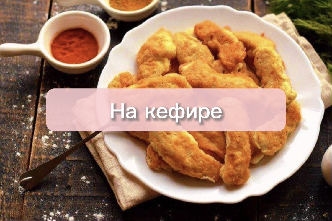 Ингредиенты: - Филе куриное - 400 г. - Соль, перец, приправа для курицы - по вкусу - Яйцо - 1 шт. - Кефир - 100 мл. - Мука - 3 ст. л. - Раст. масло - 3 ст. л. Приготовление: 1.Нарежьте куриное филе на несколько частей, посолите, поперчите и обмажьте приправой. 2. Слегка взбейте яйцо с солью, затем добавьте кефир и просеянную муку. Тщательно взбейте. 3. Разогрейте масло в сковороде на среднем огне. Обмакните каждый кусочек курицы в тесто и обжарьте до золотистой корочки с обеих сторон.