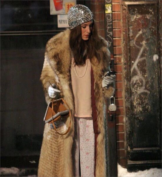 Приветствую Вас, стиль леди! Сегодня я показала Вам видео из сериала «Секс в большом городе» (видео см. ТУТ). В видео мы видим образ главной героини сериала Кэрри Брэдшоу, части из этого образа очень популярны сейчас и являются трендами! Вообще создатели сериала, а точнее его стилисты - профессионалы, их часто называют провидцами, но это скорее умение видеть моду, знать ее законы, понимать частоту изменений в модной индустрии и многое другое. Итак, сейчас образ очень популярный. Во-первых, в этом образе имеется ретро-шуба, которая сейчас стала не просто трендом, а очень востребованной вещь. (*Про то, как оживить старую модель шубы, можно прочитать ТУТ). Все девушки во всем мире облачились в старые модели шуб в этом году. Такую модель можно найти на Авито, например, или найти в комиссионных магазинах. Во-вторых, посмотрите на головной убор Кэрри и это одна из модных вещиц в этом сезоне, а именно шапочка в пайетках, бисере и т.д. Что-то из «ревущих 20-х» и хиппи. Многие модницы примеря