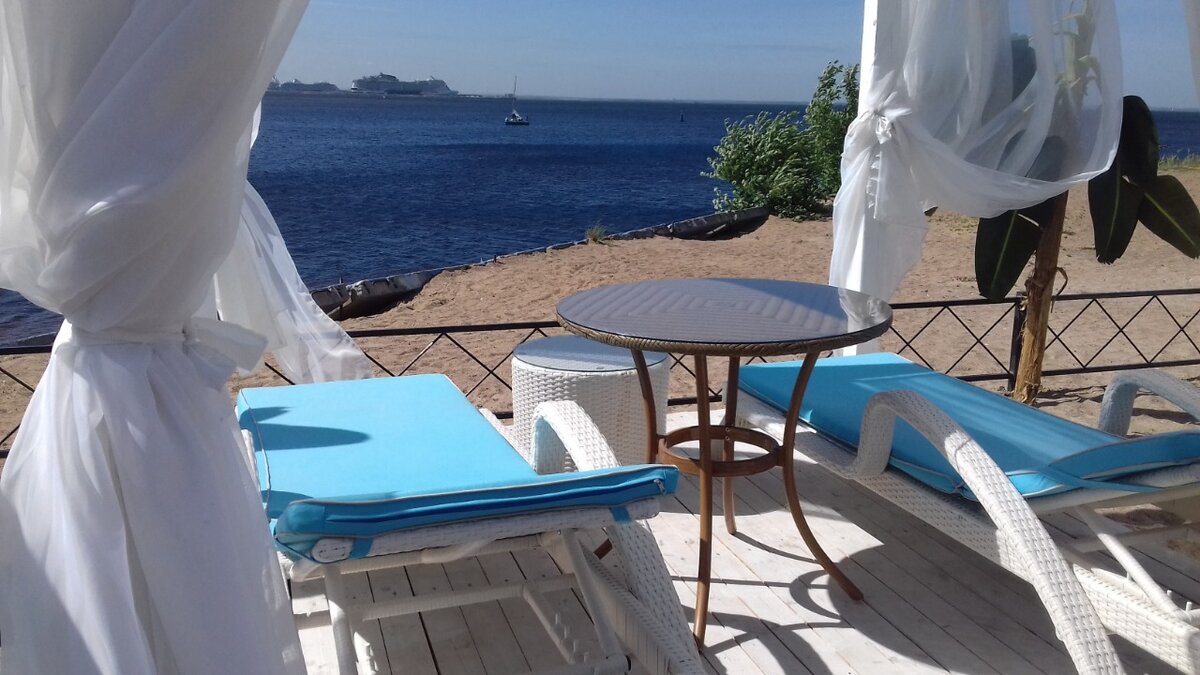Как обустроить зону отдыха на террасе при помощи столика и шезлонгов из искусственного ротанга?