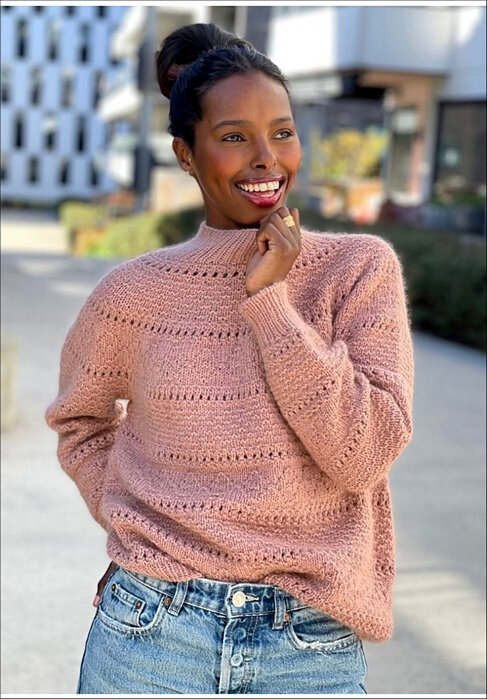 На остальной части свитера повторять ряды 1-47 фактурного узора, продолжая с того места, где вы остановились на кокетке. С этого момента уже не прибавлять петли!