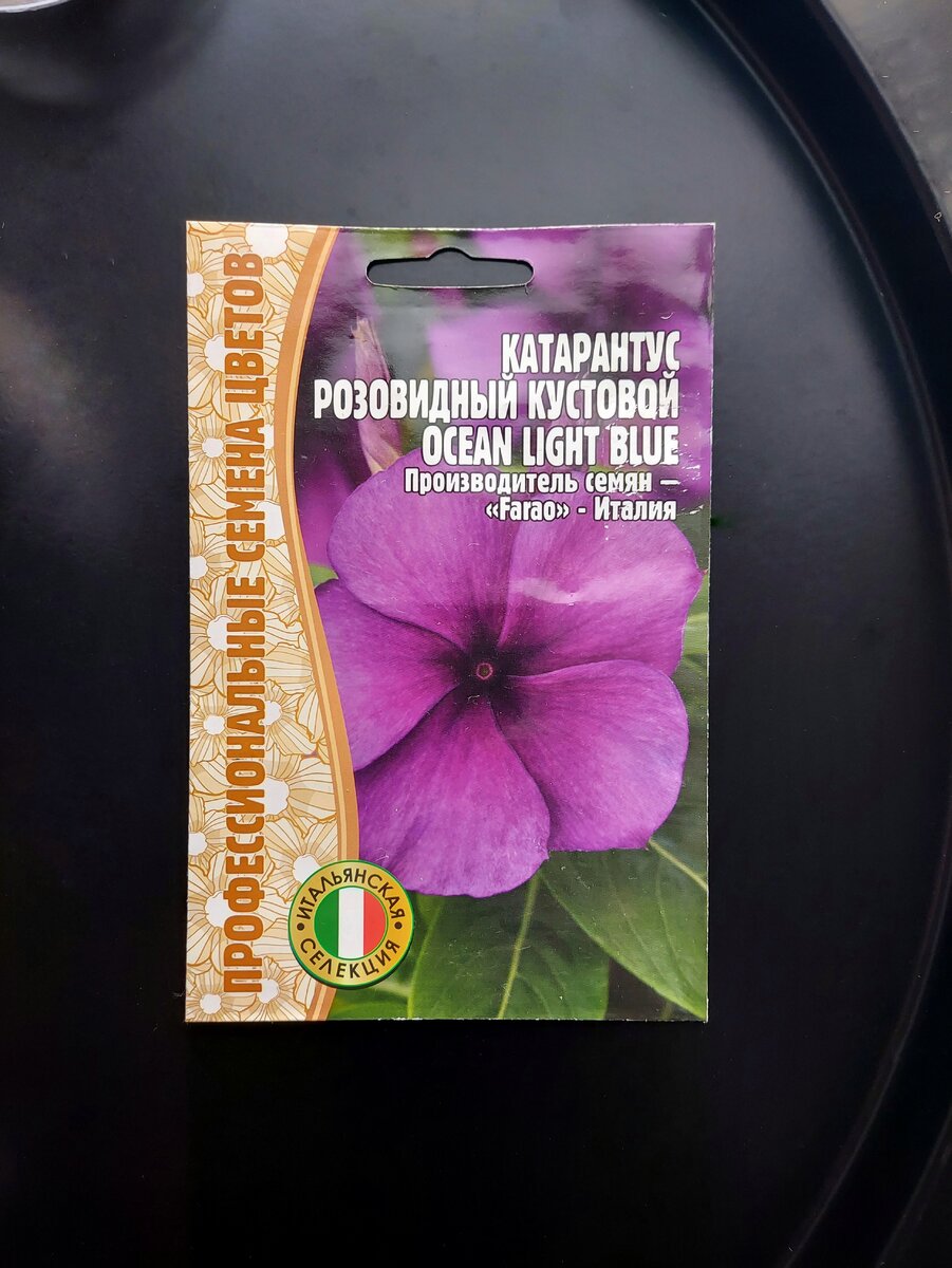 Катарантус розовидный (или просто розовый - Сatharantus rosea). Умопомрачительного цвета. Моя ахиллесова пята в этих оттенках лилово-фиолетового. И я ведь понимаю, что не выдаст он такой оттенок, как заявлено картинкой. Да и работать с темными цветами не торт. Но пусть будет хотя бы близко к такому, хоть в сумерках. Хоть в редакторе подтянуть.