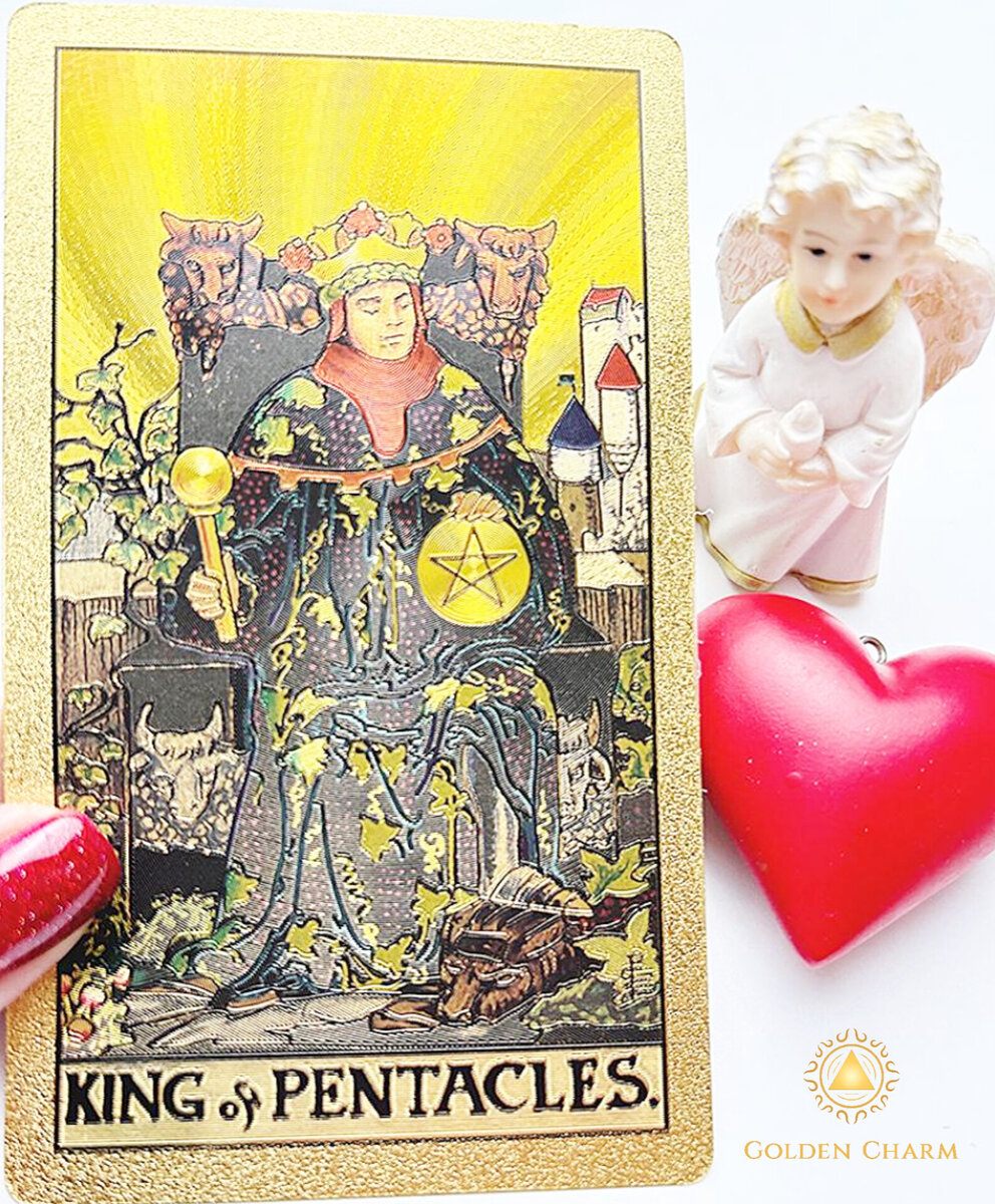 Король пентаклей-карта накопления материальных благ, рационального их использования, предприимчивости, проницательности, жизненного опыта и компетентности. Так же управленческих навыков, подъема и роста в делах, стабильного развития и долгосрочных проектов.