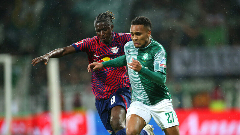 «Лейпциг» и «Вердер» сыграли вничью в матче 16‑го тура чемпионата Германии по футболу. Встреча прошла в Бремене и завершилась со счетом 1:1. Счет в матче открыл форвард гостей Лоис Опенда, у «Вердера» точным ударом ответил нападающий Джастин Ньинмах. «Лейпциг» занимает 3‑е место в таблице Бундеслиги, набрав 33 очка. В активе «Вердера» — 16 очков и 13‑я строчка. Прямые трансляции матчей чемпионата Германии смотрите на каналах холдинга «Матч», а также сайтах matchtv.ru и sportbox.ru. Чемпионат Германии. 2023-24. Тур 16 «Вердер» (Бремен) — «Лейпциг» (Лейпциг) — 1:1 (0:0) Голы: Ньинмах, 75 (ВИДЕО). — Опенда, 47 (ВИДЕО).