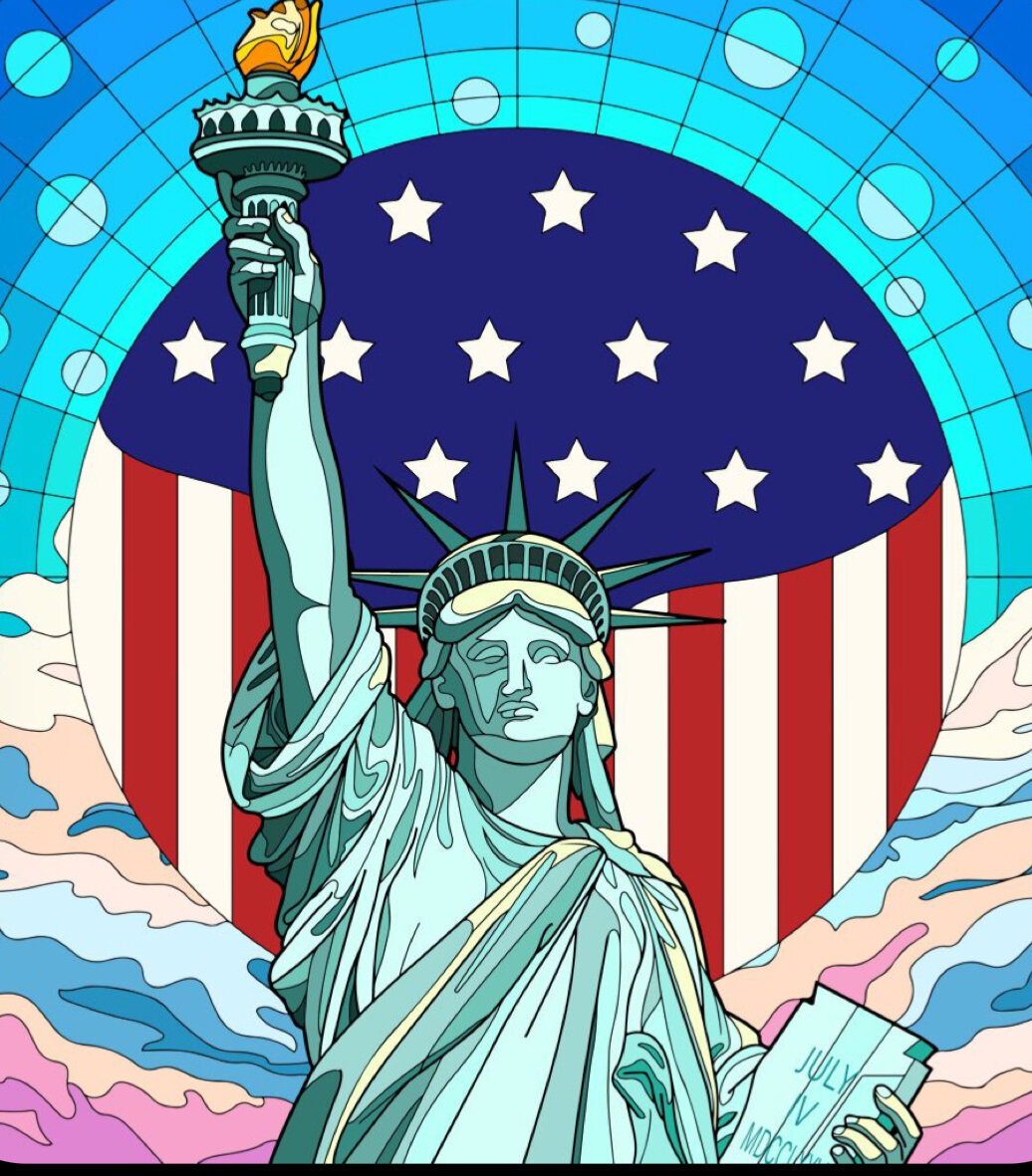 стремление к счастью". Автором этой декларации был Томас Джефферсон, последователь английских философов и французских просветителей. Олицетворением идеалов Декларации и своеобразным символом США стала статуя Свободы, установленная в 1886 году на скалистом островке у входа в Нью-Йоркскую бухту, в ее левой руке текст Декларации, а в правой - факел, освещающий иммигрантам их трудную дорогу на континент.