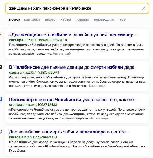 Там в предыдущем посте женщины жаловались, что всю жизнь не доедают (будто мужчины им не дают, да). Как взрослый дееспособный человек, который работает, вообще может недоедать из-за кого-то? Из-за чего-то — да. Из-за нехватки денег, например. Но из-за кого-то ... Их что, по рукам бьют, не разрешают есть вдоволь? Или они об общественном мнении, кричащем, что женщина должна есть как птичка. Так на такое мнение не плевать ли? Где мои два бургера?! Если заставить дам голодать способны какие-то стереотипы, то я и не знаю даже, что сказать. Ну это ладно. Возьмем просто за отправную точку то, что они хронически ущемлены «патриархальным обществом» настолько, что недоедают. Запомнили? Пошли дальше. Такая новость: https://www.chel.kp.ru/daily/27592/4864419/ Не считаю КП авторитетным источником, но для «пересказа» новости пойдет. Итак, две отмороженные бабы до смерти избили пожилого мужчину за то, что он сделал им замечание. И, знаете, что? ИХ уже ОТПУСТИЛИ! Снова все равны, но другие равне
