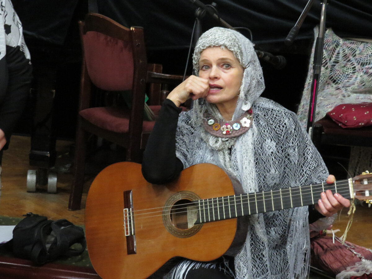 Наташа Горленко кто она такая? В интернете вы найдете множество информации. Особенно много сплетен. Концерты у нее крайне редки, и всегда в аншлагах. Она обладатель редкого тембра. Его определяют как хрустальный. Звонкий хрустальный ручеек и что самое главное, без вибраций. Такой от природы а не от вокальных ухищрений. Но я о другом, об этом уже написано. Она удивительная чудачка. На своем концерте она заняла такое место, что ее было совершенно не видно. На первом плане экран на котором отрывки из ее фильмов, гитарист перед экраном, который изредка помогал, а она справа практически за экраном, и еще сидя. Иногда вставала, разговаривала с залом, а потом опять садилась, исчезала за стойками микрофонов, и пела, и сама себе аккомпанировала. И самое зачетное, как сегодня говорится, что она прочитала несколько стихотворений, посвященных ей, и все они смешные до колик. В этих дружеских стихотворениях Горленко выглядит, ну самой уникальной чудачкой. Мало того, она спела еще
