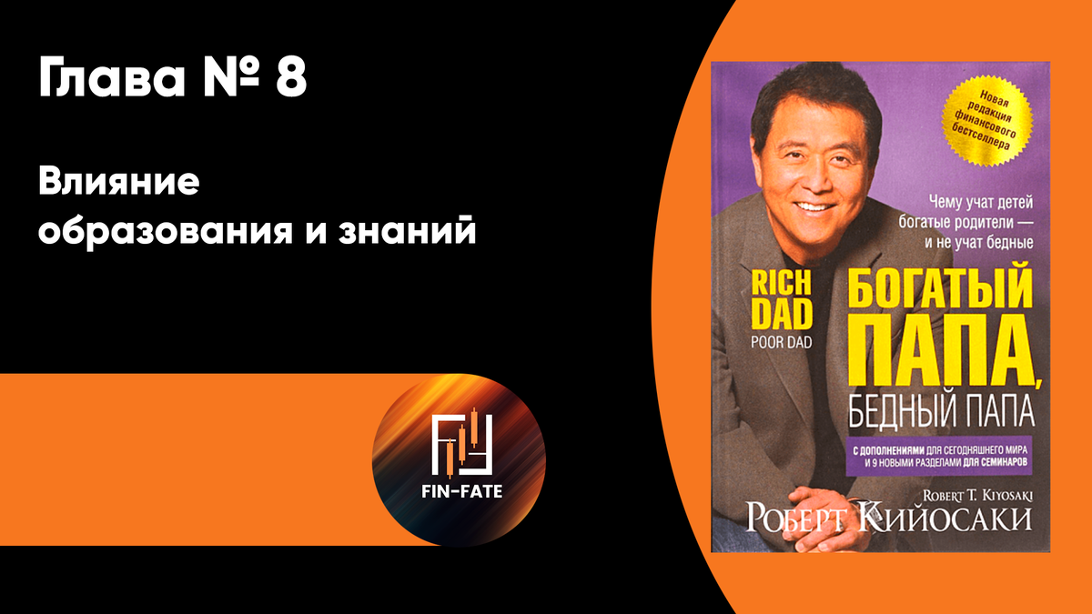 "Богатый папа, бедный папа" Роберта Кийосаки — книга, ставшая бестселлером, предлагает уникальный взгляд на финансовое образование и подход к богатству. В центре внимания — два отца автора, представляющих разные философии в отношении денег и успеха. Восьмая глава дает читателям глубокий взгляд на мировоззрение богатого папы, раскрывая ключевые принципы его подхода к финансам. Восьмая глава "Богатый папа, бедный папа" фокусируется на концепции инвестирования и создания пассивного дохода. Богатый папа утверждает, что большинство людей работают ради денег, но истинное богатство заключается в том, чтобы деньги работали на вас. Автор обсуждает понятие активов и пассивов, подчеркивая, что для достижения финансовой независимости необходимо создавать пассивные источники дохода, которые приносят деньги, даже когда вы спите. Богатый папа предлагает сосредоточить усилия на приобретении активов, таких как инвестиции в недвижимость, бизнес или ценные бумаги, вместо того, чтобы ограничиваться зарабо
