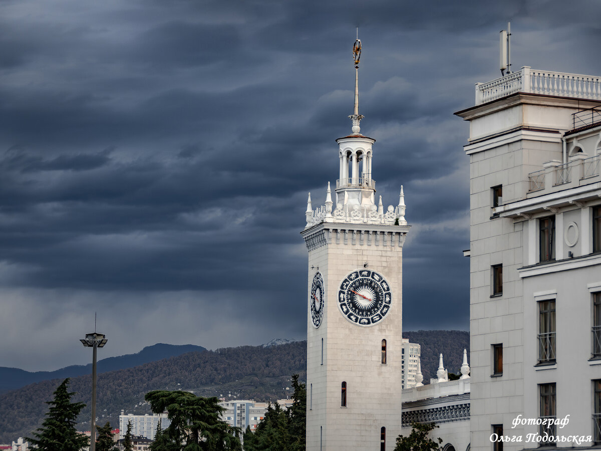 Друзья, ВСЕМ привет и отличного настроения! Хочу поделиться кадрами железнодорожного вокзала, отснятыми в городе Сочи в конце ноября 2023 года. Сочи — одна из крупнейших пассажирских железнодорожных станций Краснодарского края. Относится к Туапсинскому региону Северо-Кавказской железной дороги. Станция расположена в Центральном районе города. В 1913 году на Ярмарочной площади (ныне Привокзальная площадь) перед городским кладбищем (ныне Завокзальный мемориальный комплекс) было определено место для строительства вокзала станции Сочи. Первое здание вокзала было построено в 1923 году, второе — в 1939 году. 10 сентября 1952 года было принято в эксплуатацию здание железнодорожного вокзала, намного большее по размерам, чем предыдущие, построенное в стиле сталинского ампира по проекту архитектора А. Н. Душкина, в основу которого лёг его проект здания железнодорожного вокзала в Симферополе. Трёхэтажное здание вокзала имеет три чередующихся внутренних двора и высотную башню (55 м). Её венчает шп