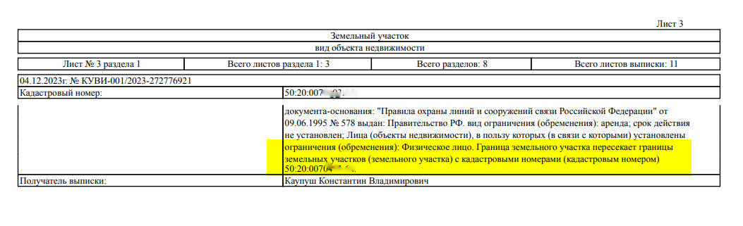Пример 1. Участок со скрытыми обременениями