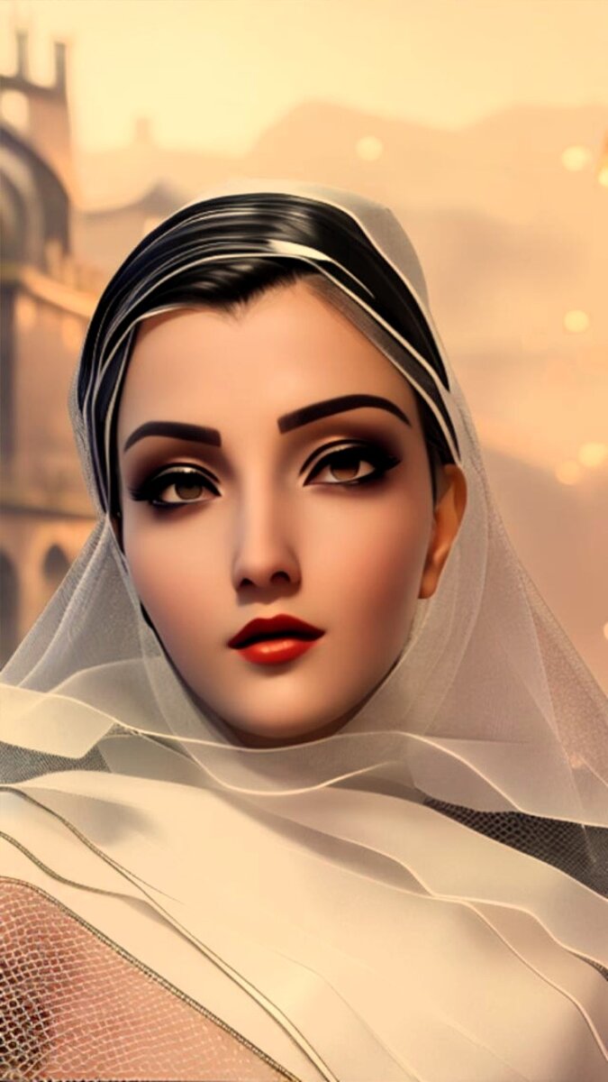Лицо Амины омрачила печаль, она гордо вскинула голову и строго сказала ему:
