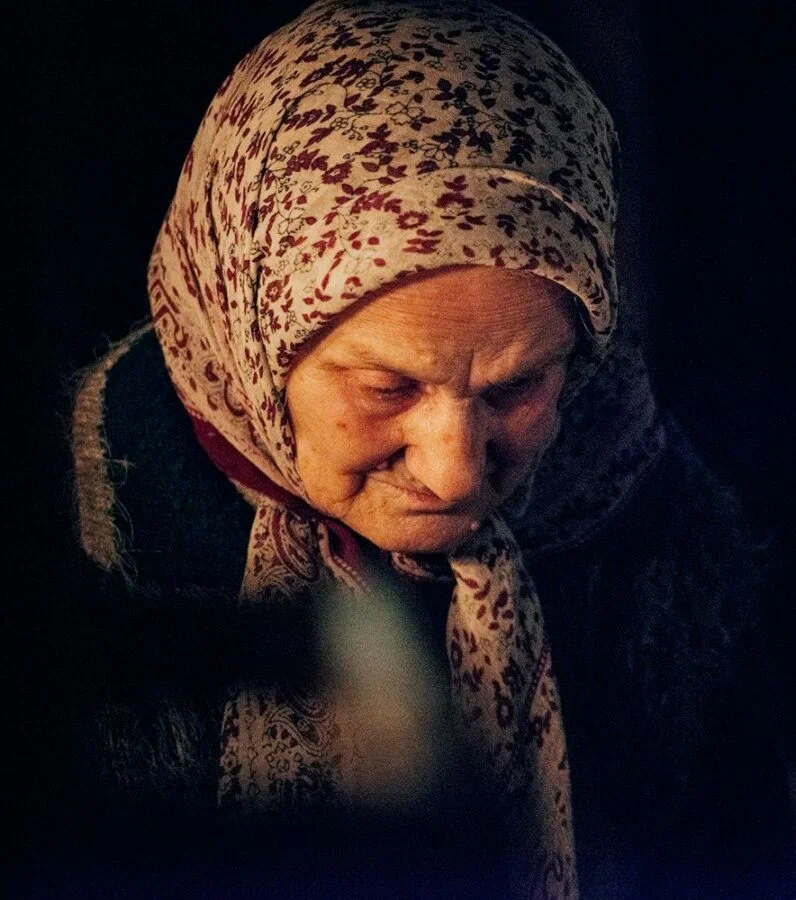 Народ бодро вываливает из-за угла и устремляется из метро в попутном направлении. И конечно - по прямой. Так быстрее. В стороне от людского потока, почти у того самого заборчика стояла бабуся. Ссутулясь, сгорбившись, опустив плечи и голову, опираясь обеими руками на палочку.