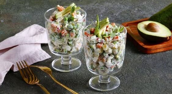 Рецепт на одну- две порции. Если нужно больше- удваиваем ингредиенты! Для НЕ вегетарианского варианта можно добавить отварную курицу или индейку. · Морковь – 100гр · Свежие огурцы – 150гр · Соленые огурцы – 100гр · Копчёный тофу – 100гр · Авокадо – 100гр · Зелёный горошек – 90гр · Зелень по вкусу · Соль по вкусу · Йогурт греческий – 2ст.ложки Морковь помыть и отварить (около 20 минут) Остальные ингредиенты нарезать мелким кубиком. Когда морковь будет готова- остудить и тоже нарезать. Добавить горошек и зелень. Заправить йогуртом. Для пикантности можно добавить в йогурт чуть-чуть соуса песто. Перемешиваем и можно пробовать. Приятного аппетита ❤️