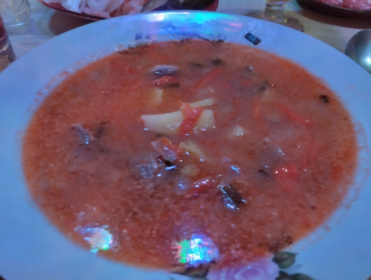 Привет, друзья! Выходные мы за городом провели, р чем я писала вот тут=> Про наш загородный домик можно почитать вот тут°> Кроме всего прочего приготовила я густой суп из "духовой индейки". Индейку порезала на кусочки, обжарила с большим количеством лука. Не пожалела аж 3 луковицы. Все это переложила в кастрюлю, залила кипящей водой, добавила пару ложек томатной пасты, перец горошком, соль и порезала одну картошину. Томатную пасту купила "Ящик краснодарских помидор', очень нравится эта фирма. Похлебка быстро закипела, как сварилась картошка - готово. Ещё свой сушеный зелёный лук добавила. Это я когда собирала лук , который на моей метровой грядке рос, хорошие зелёные перья настригла и посушила. Теперь пользуюсь . Обычно я в такой суп добавляю тыкву или кабачок, но в этот раз мы только приехали и было лень чистить. Потом я, вспомнила, что в морозилке полно зелени и свекольных листьев, пора это все добро использовать. В общем, суп получился вкусный. Густой за счёт лука. Я ещ