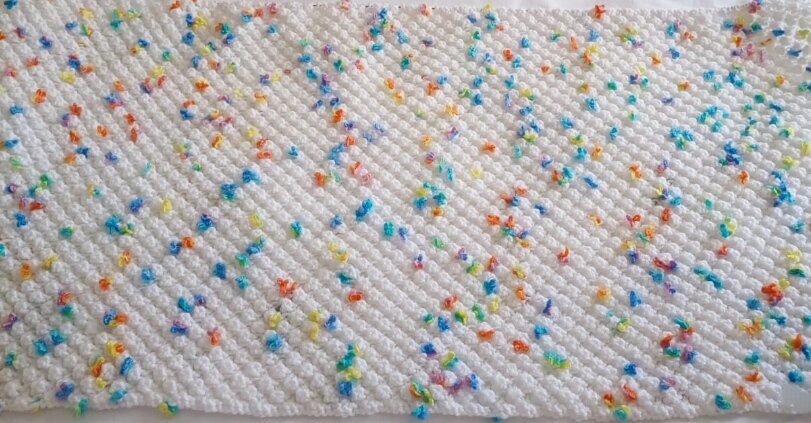 Когда мне нужно было очень быстро связать в подарок няшный детский пледик, я решила вязать такой вариант и не пожалела - плед используется и полюбился❤️👶❤️ Такой плед малышу вяжется очень просто и быстро. И тем не менее, выглядит необычно визуально и тактильно. А также довольно плотный. Пряжа: Alize Baby Flower, состав 94% акрил, 6% полиамид, 100 гр/210 метров, 5-8 мотков в зависимости от желаемого размера. Спицы: 3,5 мм Образец: 10 х 10 см = 21,5 петля х 26 рядов. Обозначения: Описание: Набрать 182 петли обычным способом= кратно 4 петлям +2 кромочные. Вязать узором "Каракуль". Петли классические. Узор "Каракуль": 1 ряд - кр, все изн, кр. 2 ряд - кр, 1->3, 3^изн, кр. 3 ряд - кр, все изн., кр. 4 ряд - по рисунку - кр, 3^изн, 1->3, кр. 5 ряд - кр, все изн, кр. Повторять раппорт в высоту. Раппорт узора: 1-2 ряд. Провязать необходимую вам высоту пледа и петли закрыть. Варианты окантовки пледа: Рекомендации по уходу: