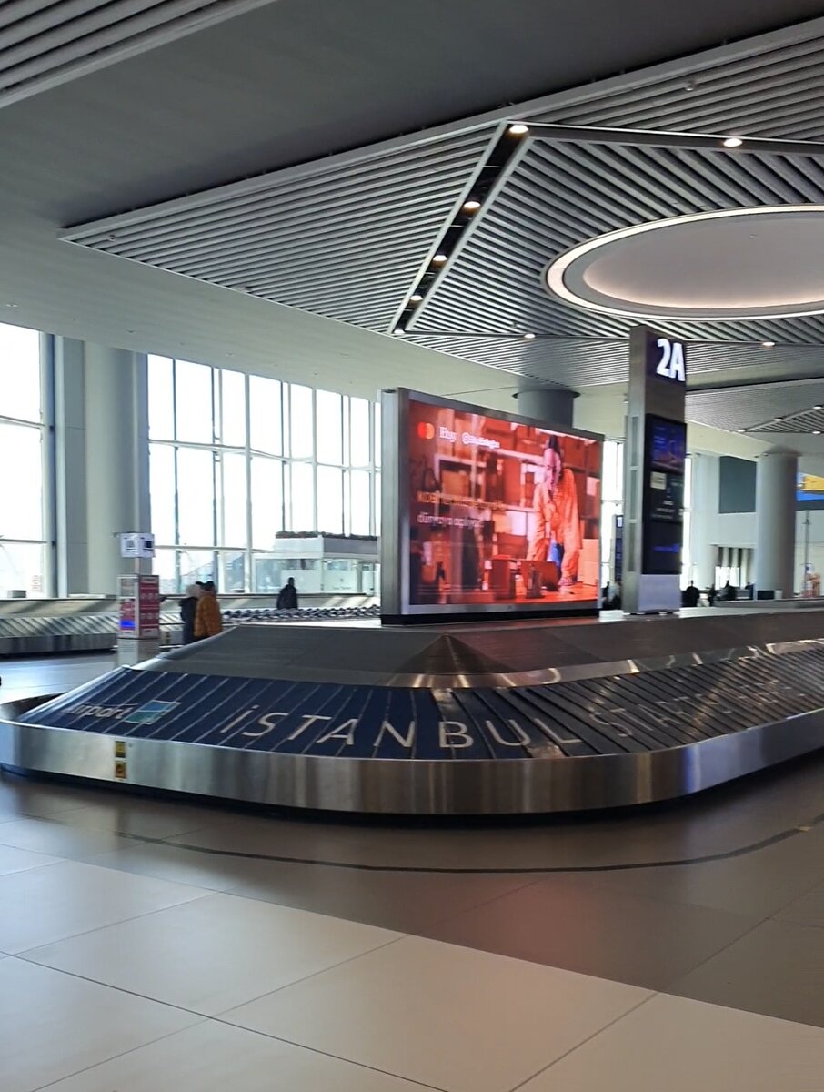По прилёту в Стамбульский аэропорт нас не высадили через рукав, а отвезли на автобусе к зоне получения багажа. Это 1 этаж аэропорта. Зона большая, и если есть у вас багаж дожидаетесь его там.