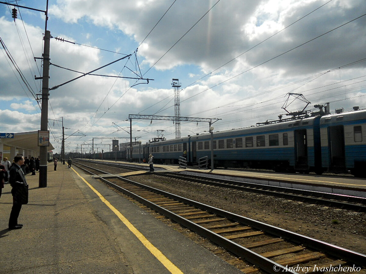 17 мая 2014 года снял достаточно поездов, делаю фото вокзала. Обратите внимание на укороченную водонапорную башню слева. Ей осталось на тот момент стоять два года..