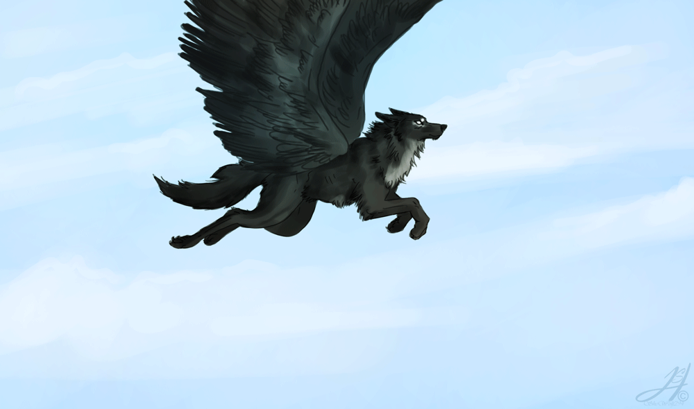 Маг - переросток Часть 2 Глава 16 Эксперимент Валек Вань - Лев набирал высоту всё выше и выше. Плавные взмахи крыльев не оказывали сколь заметного напряжени сил. Чувствовалось, что эксперимент удался... Уже далеко внизу остался слой облаков и стало не хватать воздуха дыханию. И Вань - Лев решил снизиться до уровня облачности. Здесь он почувствовал, что в небе он не одинок. Невдалеке Вань услышал какое то резкое дыхание и нецензурную брань - казалось, кто то пытается догнать по воздуху его - Лев - Вань.. Вань сделал крутой вираж на разворот и ... увидел! "Крылатый волк - Валек" нёсся зигзагами, как по вертикали, так и по горизонтали, матеря на чём свет стоит всех, кого знал, и Вань в том числе... Было видно невооружённым взглядом, что в небе он впервые и аэродинамику ещё не прочувствовал. Да и размах крыльев явно был маловат для волчьих размеров тела Валек. И ему стоило больших трудов сохранять высоту и направление движения. Полёт был рваный и было заметно, что силы Валек - волка б