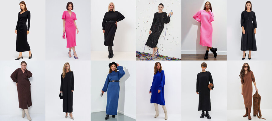 Такие платья как и платья на запах подходят всем фигурам. Единственное именно у этих двух моделей высокие вырезы, что может визуально укорачивать шею.