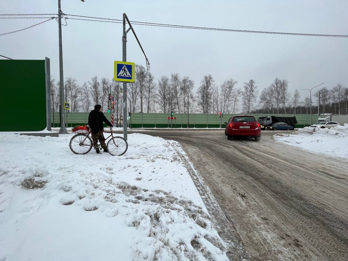 Есть еще одна сложность на данном участке: водители, которые едут со стороны Москвы и решают повернуть направо, на улицу Светлую, в последний момент видят перед глазами пешеходный переход. Он буквально спрятался за шумозащитными экранами. Знаков, предупреждающих о пешеходах, тоже нет. Вячеслав отмечает, что пока, к счастью, ДТП с пешеходами не было, но рискуют они каждый раз.