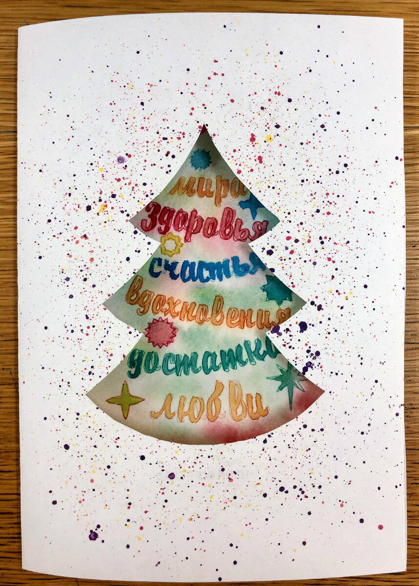 Новогодняя открытка акварелью