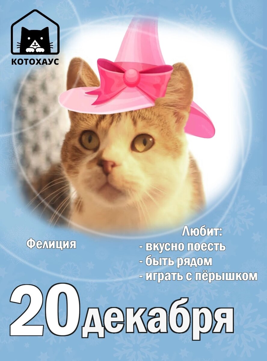Фелиция истинная модница и кокетка! Ей очень важно внимание и присутствие человека рядом... Это её мечта в преддверии Нового года!