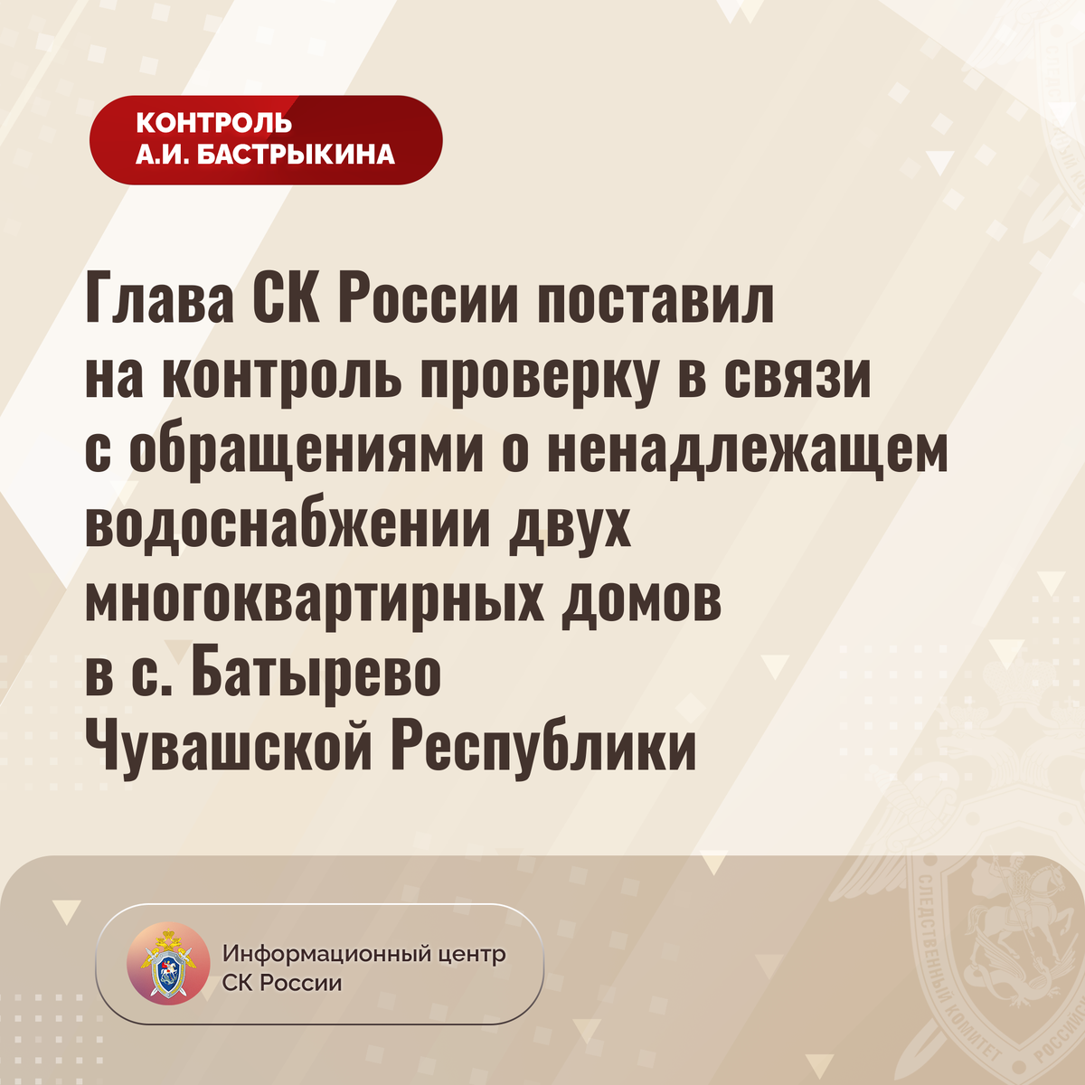 Глава СК России поставил на контроль проверку в связи с обращениями о ненадлежащем водоснабжении двух многоквартирных домов в с. Батырево Чувашской Республики