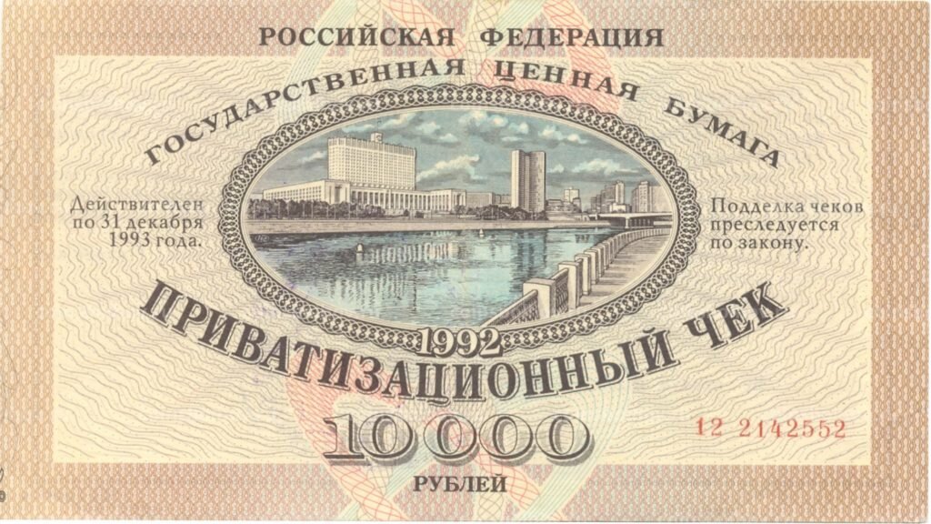 Поллитровая бутылка водки по цене «Волги» Вам ничего не послышалось. С августа 1992 года в стране началась приватизация, сначала ваучерная. Каждый гражданин смог с помощью приватизационного чека – ваучера обрести причитающуюся ему часть государственной собственности. Чек можно было обменять на активы предприятий, которые тогда еще находились в собственности государства.