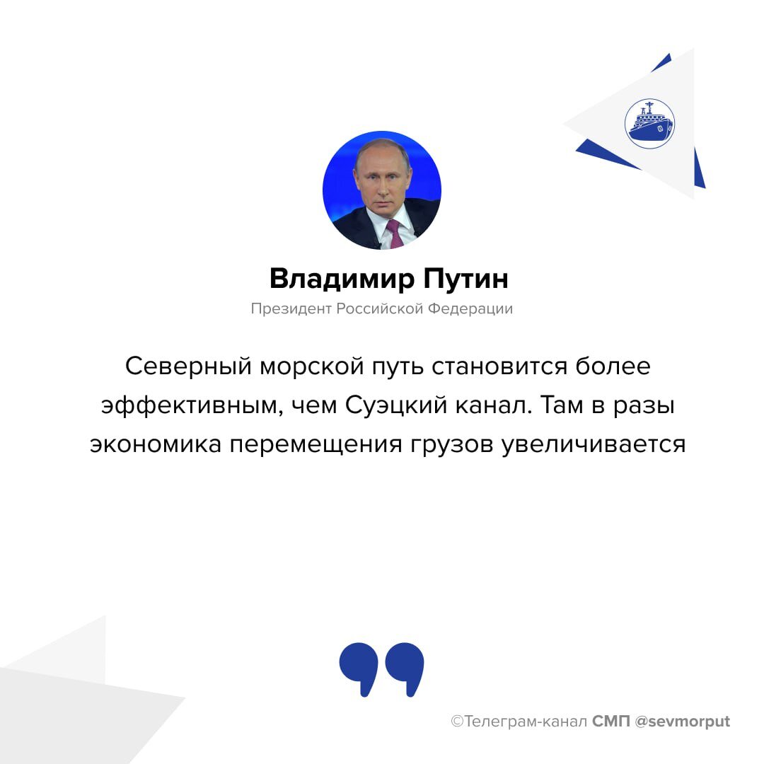 Российский лидер отметил, что климатические изменения благоприятствуют СМП — доступность маршрута весной и осенью растет. При этом логистика через СМП предполагает существенные экономические выгоды — сроки доставки товаров из Восточной Азии до Западной Европы могут быть короче альтернативных на 40%.