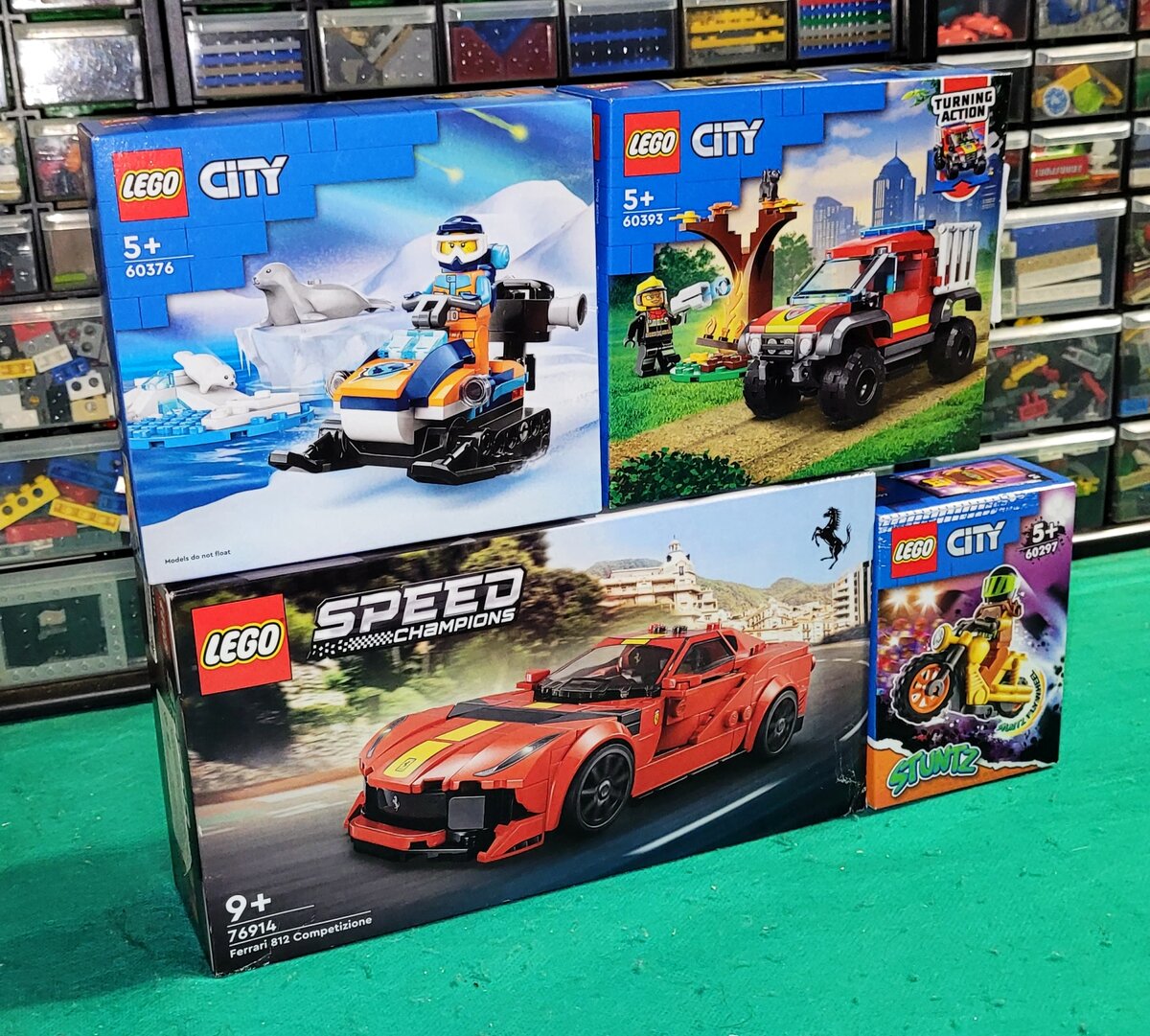 За последнее время набралось некоторое количество покупок стаффа (лего, книги, диски), о котором хотелось бы сказать пару слов. LEGO Естественно, в очередной раз подкупил наборов LEGO. Ничего крупного и серьезного, просто подбирал на МегаМаркете те, которые были интересны, чтобы к общей сумме заказа для можно было применить промокод. В итоге оказались куплены 76914, 60376, 60393, 60297. Пару слов о каждом. 76914 Ferrari 812 Competizione взял, чтобы добить полный комплект линейки Speed Champions за 2023 год. О вкусах не спорят, но на мой субъективный взгляд этот набор по сравнению с остальными получился самым слабым по дизайну. 60376 Arctic Explorer Snowmobile давно чесались руки взять ради классной минифигурки и новых моделей тюленей. Небольшая кучка деталей сверху это приятно дополняют. 60297 Demolition Stunt Bike - отличная "постапокалиптичная" минифигурка и симпатичная модель мотоцикла. Теперь могу сказать, что собрал все интересные мне "стартовые" наборы Stuntz. 60393 4x4 Fire Truc