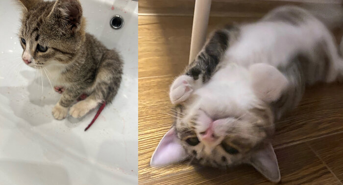 Привет из дома от Тосика. В первые морозы он примерз хвостом. Хвост пришлось удалить. После лечения, он поехал в новый дом