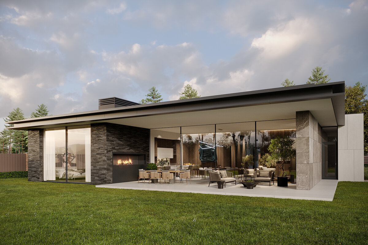 Это одноэтажный дом в современном стиле с террасой. Панорамные окна визуально увеличивают внутреннее пространство и наполняют его светом. В отделке фасада использован декоративный ригельный кирпич шоколадных оттенков, в сочетании со светло-серым керамогранитом и алюмокомпозитом. Со стороны внутреннего двора — просторная и уютная терраса для отдыха, отделанная светлым керамогранитом. Общая площадь дома — 220 кв. м. Проектом предусмотрены кухня-гостиная, мастер-спальня, две спальни, 2 гардеробных и 3 санузла, технические помещения. С другими нашими проектами вы можете ознакомиться по хэштегу: #типовые_проекты_unistroy. Если у вас появились вопросы, вы можете задать их в комментариях к посту. #стройка #архитектурныестили #проектдома #загороднаяжизнь #стройкадома #строительстводомовподключмосква #строительствоподключмосква #строительнаякомпаниямосква #подмосковье