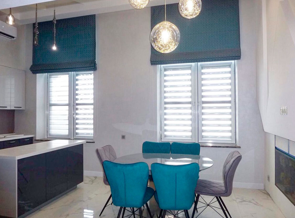 Смотреть в серый забор как-то странно. Ну или когда сосед смотрит из окон на ваш семейный вечер, тоже забавно. В каких случаях можно обойтись без тюля? Чем можно заменить тюль на окне? Римские шторы Римская штора – это специальный механизм и особым способом пошитое полотно. Их универсальность заключается в том, что они подходят как для классического, так и для современного интерьера, а также для помещений любых размеров. Вы можете сами выбрать уровень, на котором установите штору, что является главным отличием от тюля – уровень освещения можно регулировать. Кроме того, их можно сочетать с традиционными шторами или использовать как самостоятельный элемент декора окна. Шторы на кулиске Шторы на кулиске – технологичное современное решение для оформления окна. Они легко устанавливаются и могут быть использованы как в кла
