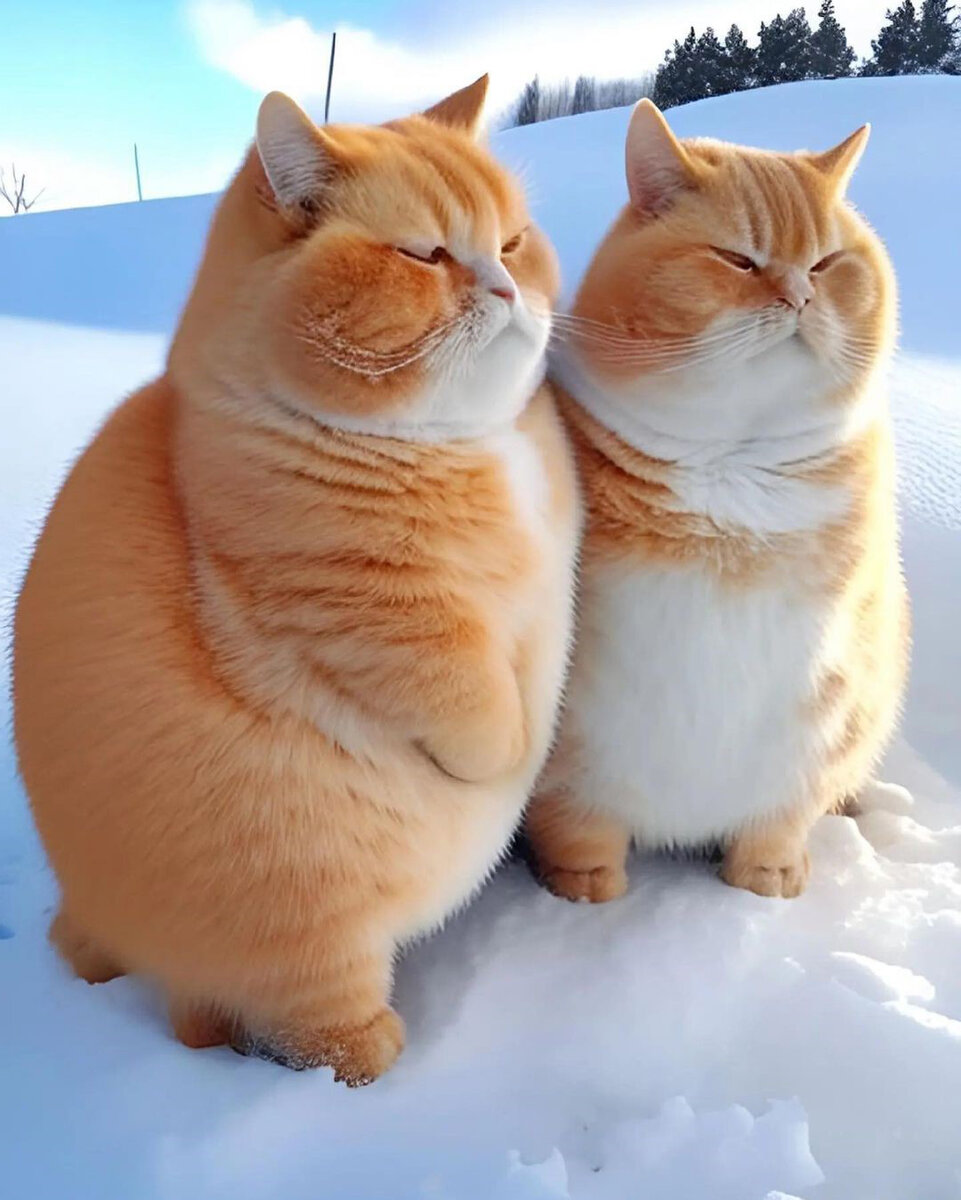 Посмотрите на этих милых толстячков, которых "нарисовал" искусственный интеллект. Пусть эти кошачьи обнимашки на снегу создадут у вас праздничное зимнее настроение. Правда они милахи? Или нейросеть перестаралась и сделала их слишком упитанными?