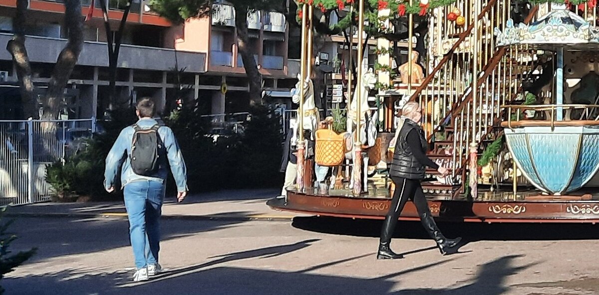 А теперь немного про то, как одеваются зимой в Монако. Погода здесь плюсовая всю зиму, очень редко, когда температура опускается до нуля. Горы вплотную спускаются к морю и защищают княжество от холодных зимних ветров, здесь особый микроклимат. Очень жарко летом и тепло зимой. Я погуляла по улицам и пофотографировала то что вижу, наугад. Кто попадется. Как я обычно и делаю. И что мы видим? Как я уже писала, монегаски любят носить черную одежду. И летом и зимой. 2 фото: Хотя зимой, я заметила больше светлых тонов: курточки и пальто могут быть светлыми, по моде. А еще зимой нужно носить сапожки, ну и что, что температура плюсовая, зима же. 2 фото: Шубки тоже носят. И что интересно, обязательно рядом окажется кто-нибудь, кому всегда жарко, и он будет категорически в шортах: Пальто тоже носят нараспашку, как в Ницце. Здесь еще теплее, нет таких ветров с моря. Беретик тоже можно. Не для тепла, чисто как дополнение к образу. Или если голову не успела помыть, например. 2 фото: И шарф