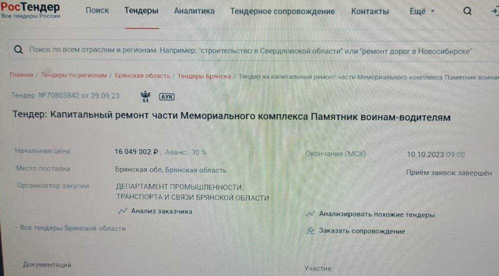 Казенный контракт на реставрацию фронтовых полуторок и ремонт гранитных постаментов под ними был оценен в 11,55 млн рублей. Хотя изначально в областном департаменте промышленности и транспорта, объявлявшим в конце сентября тендер, резервировали “на капремонт части Мемориального комплекса Памятник воинам-водителям” чуть более 16 млн рублей. Поступило 4 заявки, одна из которых ( самая “дорогая” – на 15,4 млн рублей) вскоре была отозвана. Осталось три, очень похожих, – их податели готовы были провести реконструкцию за куда более скромные деньги: от 12,11 до 11,55 млн рублей.