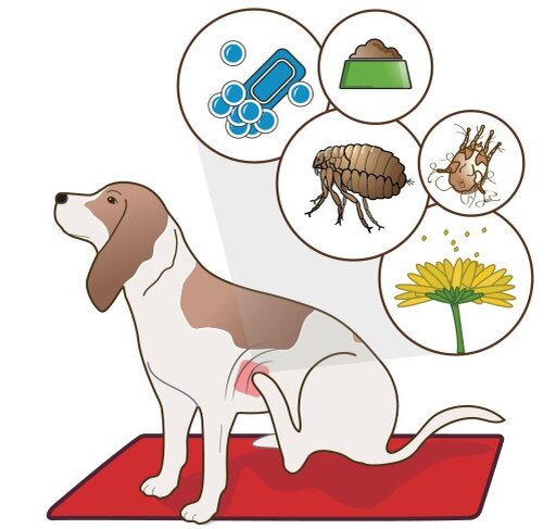 Зуд у собак – очень распространенное явление и является одной из наиболее частых причин, по которой владельцы собак обращаются за ветеринарной помощью. Проблема в том, что зуд у собаки может быть вызван целым рядом причин: укусы блох (блошиный дерматит), аллергия на пыльцу растений, пищевая аллергия, аллергия на мыло или парфюмерию, клещи (саркоптоз), слишком сухая кожа и т.д. Нервный стресс и чувство беспокойства и тревоги также могут быть причиной возникновения зуда. Подобно тому, как люди, когда они сильно волнуются могут чесать голову, кусать ногти или теребить волосы, у собак то же могут быть подобные реакции на какие-либо сильные психологические раздражители. И, наконец, причиной зуда может быть и гормональный дисбаланс. Если организм животного не вырабатывает достаточное количество гормонов щитовидной железы или выделяет слишком много гормона кортизола, то у собаки могут возникнуть поверхностные кожные инфекции, которые также будут вызывать зуд. Для того, чтобы устранить зуд нуж