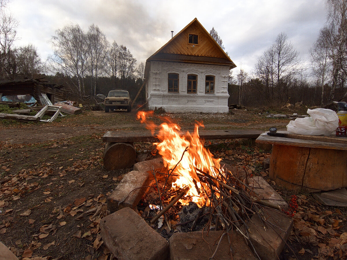 Здравствуйте, дорогие читатели «Вятского Хутора»! Деревенская жизнь после городского заточения − это настоящий глоток свежего воздуха. Именно такое ощущения у меня было осенью 2021 года. Как раз тогда, когда наш старинный дом в древне обрёл новую крышу, а внутри появилась тёплая печь и я стал окунаться в настоящую деревенскую жизнь. Тогда я делал первые шаги. Одновременно со строительными работами налаживал кое-какой быт и уют. В арсенале была старенькая электропила да советский колун. Ими я «добывал» топливо для камина-буржуйки, что согревала вековые стены. Со временем появился новый колун с фиброгласовой рукояткой. Им я тогда колол распиленные брёвна старой бани и распиленный валежник. Первым делом, приезжая в деревню, растапливал печь заранее заготовленными сухими дровами и тут же шёл пилить да колоть. В качестве козел выступало временное крыльцо, сделанное из тех же старых брёвен да досок. Лишь этой осенью оно было заменено новым, закрытым да с небольшой верандой. Как-то незаметн