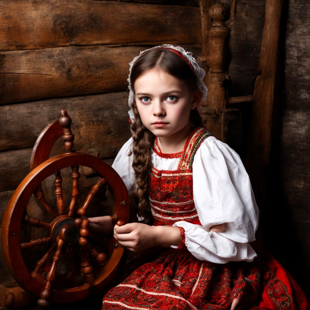 Оглянулся и через дверной проем свет разглядел, встал, потоптался, попытался ум напрячь, да ничего в голову не лезет. Поднялся по ступеням, заглянул в дверь, видит: елка стоит, огоньки на ней горят, а рядом девица за прялкой.