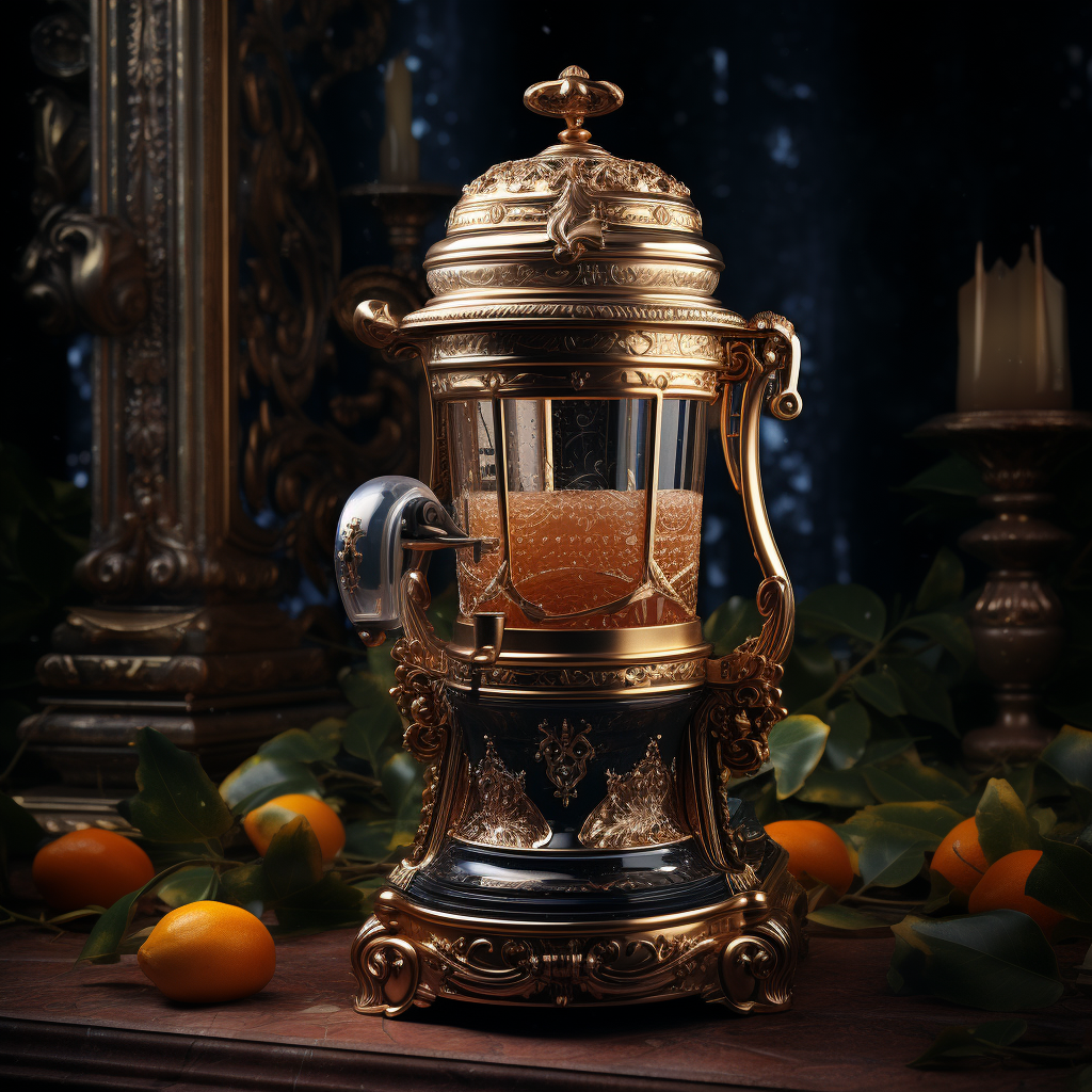 О, взирая на эту сверкающую карету для самых благородных капель фруктовой эссенции, невозможно сдержать восхищённый вздох. "Нектарная Грация" – не просто соковыжималка, а воплощение декадентского пира, где каждый поворот ручки – это дивный танец аристократов. Что ж, дорогие бароны и баронессы среднего класса, скоро и ваши кухни будут украшены этим чудом инженерной мысли, достойным Версальского дворца. Позолоченные завитки, изящные лебеди, возвеличивающие благородство и изысканность... Воистину, каждая деталь кричит о том, как происходит невероятно важное событие – сжатие апельсина. Зачем быть скромным? Пусть весь мир увидит, насколько вы великодушны и не брезгуете сжимать свои фрукты в чудо-юдо аппарате, пропитанном духом Людовика XIV. О, какие тонкие ручные работы, какой великолепный механизм, который... которым вы, вероятно, никогда не воспользуетесь, ведь кто же будет заниматься чем-то таким, когда можно просто купить пакет сока. Итак, приготовьтесь к тому, что "Нектарная Грация" с