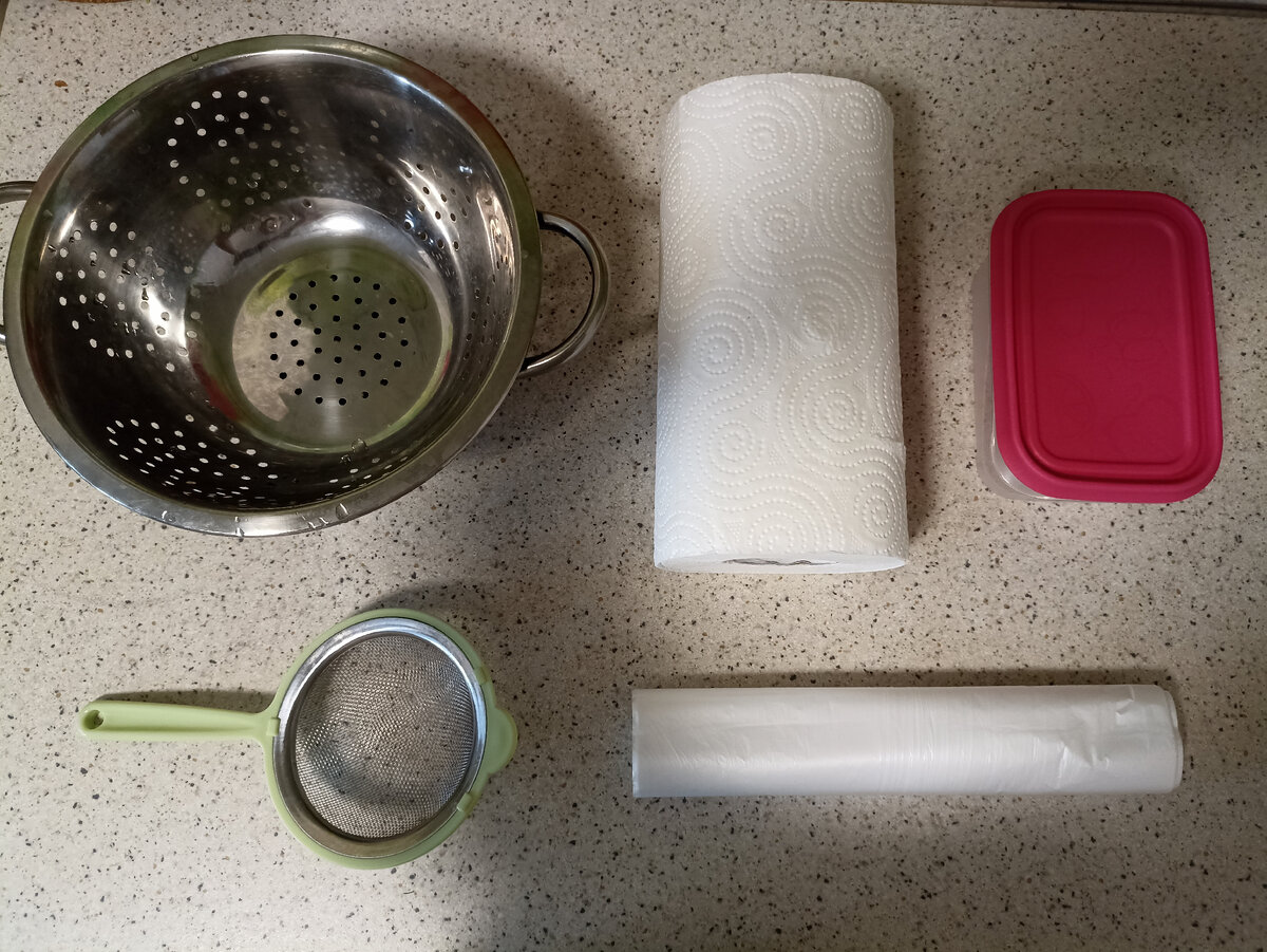– Бумажные полотенца, пластиковые контейнеры и пакеты для хранения продуктов (прозрачные).