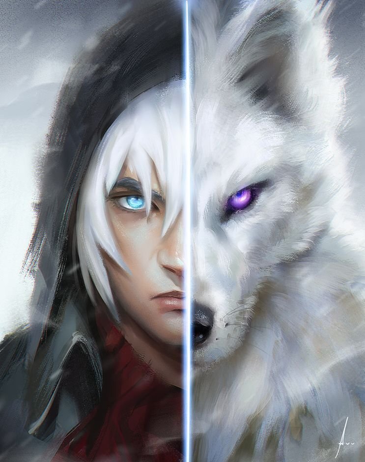 Дед хмыкнул, и вот уже напротив черного волка стоял опустив голову и сверкая глазами, белый волк.