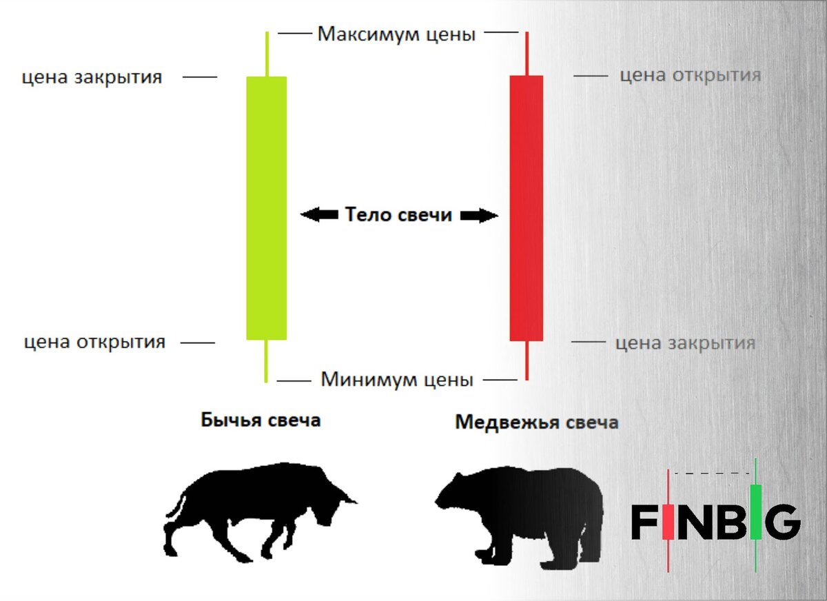 Для восходящей свечи нижняя ее часть это цена открытия, а верхняя – закрытия. Верхняя тень показывает максимум, до которого доходила цена, а нижняя – минимум.