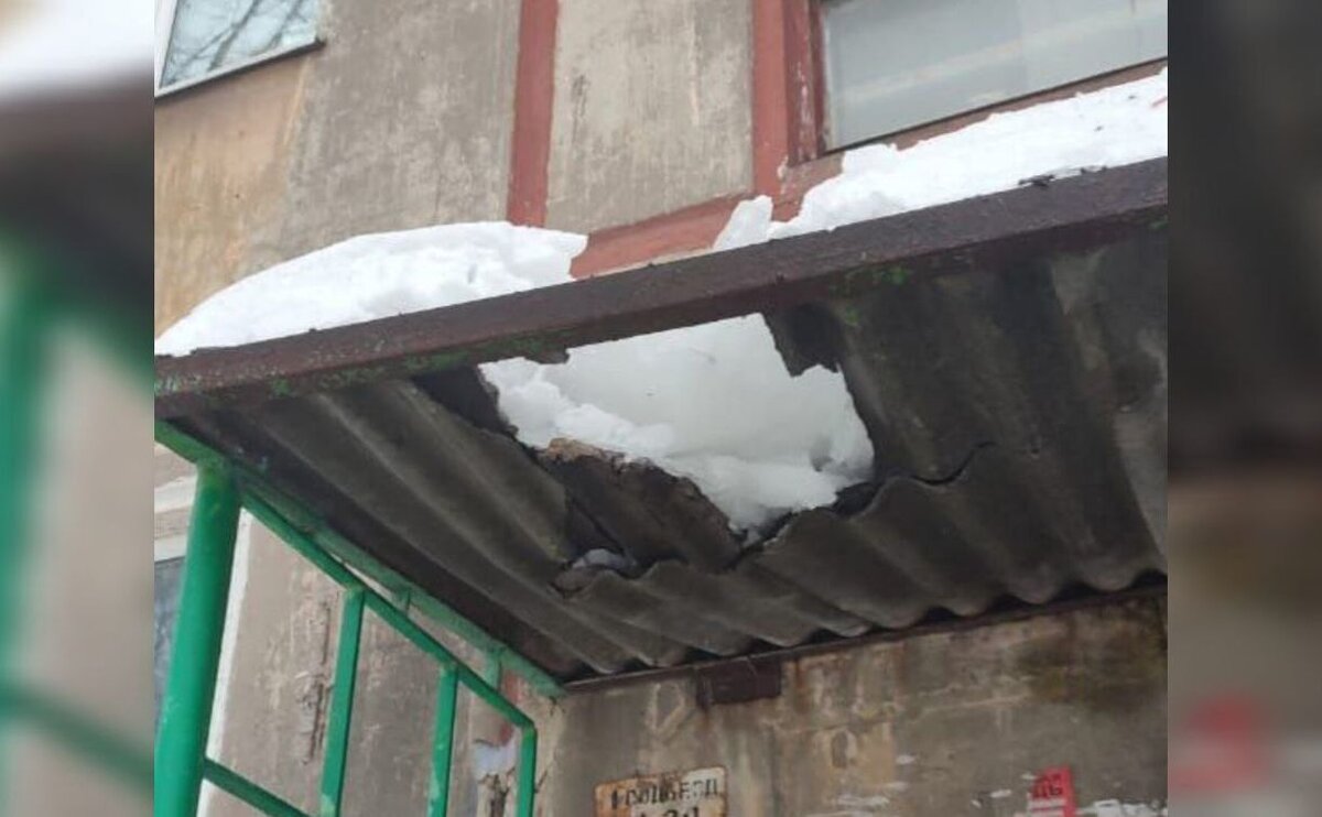 Администрация о ЧП на ул. Приупской: сотрудники УК чистили крышу и пробили козырек подъезда