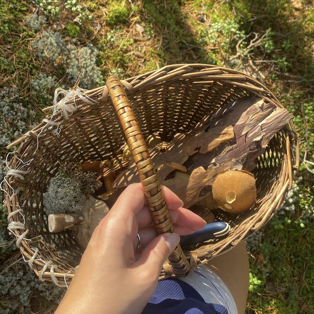 Дело было в сентябре этого года, но о находках из этого соснового леса, я вспомнила лишь вчера. У меня была стандартная лихорадочная уборка перед Новым годом. Я бы даже сказала, что она была еще более яростная, чем обычно. Хотя речь вообще не об этом. И вот в шкафу я нашла небольшой пакетик с сокровищами. Лес для меня самое лучшее место на свете. Там всегда аромат свежести и на душе становится уютно. Сказка просто. Каждый раз стараюсь унести с собой что-то памятное. Это как после отпуска на море привезти красивый камушек или ракушку. Сделаю важную ремарку, что вредить природе не стоит. Отрывать веточки с кустиков или деревьев, мусорить. Всегда забираю лишь то, что уже упало и отслужило свой срок. Так вот какие у меня были находки: немного мха, коры и очень симпатичная бутылочка (возможно, одеколон или что-то подобное) Просто так хранить в пакетике смысла нет, а вот сделать интересую композицию для декора - самое то! А вот и мой результат: Также мысль есть еще доработать и перене