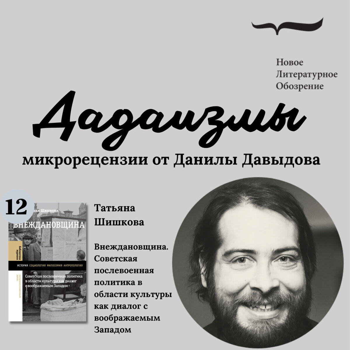 Каждый четверг лауреат премии Андрея Белого, поэт и критик Данила Давыдов пишет микрорецензии на книги издательства «НЛО». Этот текст посвящен книге Татьяны Шишковой «Внеждановщина». В книге Татьяна Шишковой предлагается цельная и убедительная интерпретация тех кампаний в области культурной политики, которые получат впоследствии устойчивое обозначение «ждановщины», – недолгой, но насыщенной и драматической эпохи с апреля 1946 по август 1948, когда Андрей Жданов стоял во главе советской идеологии, – а также и тех событий, которые последовали за смертью этого партийного функционера (включая разгром Еврейского антифашистского комитета и кампанию против космополитизма). Рассматривая постановления о фильме «Большая жизнь», о журналах «Звезда» и «Ленинград», об опере Мурадели «Великая дружба», историю создания фильмов «Иван Грозный» и «Адмирал Нахимов», решения, принимавшиеся в отношении деятельности Совинформбюро, подходы к национальным историографиям, исследовательница показывает, как не