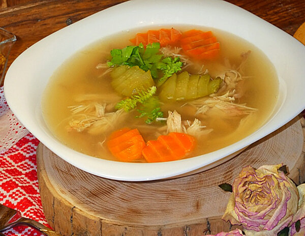 Куриный холодец – блюдо, для застывания которого совершенно не нужен желатин, а бульон всегда получается светлым и прозрачным. Этот семейный рецепт проверен годами, он передавался в нашей семье из поколения в поколение! Я убеждена, что практически у каждой хозяйки есть любимый рецепт этого блюда, который она считает самым вкусным в мире! Однако мне очень хочется поделиться своим. Вдруг вы еще не определились и находитесь в поисках того самого, идеального холодца… Или вы молодая хозяйка, и готовить его вам еще ни разу не приходилось. Холодец обычно готовят из свинины, однако я эту вкусную традиционную украинскую закуску всегда варю из… домашнего петуха и свиной ножки. Это одновременно и классическое блюдо, и оригинальное. Для застывания бульона совершенно не нужен желатин, а он всегда получается светлым и прозрачным. Конечно, если все сделать поэтапно и соблюдать некоторые маленькие правила. Ингредиенты: Приготовление: Перед приготовлением ножку с копытцем зачистите металлической мочало