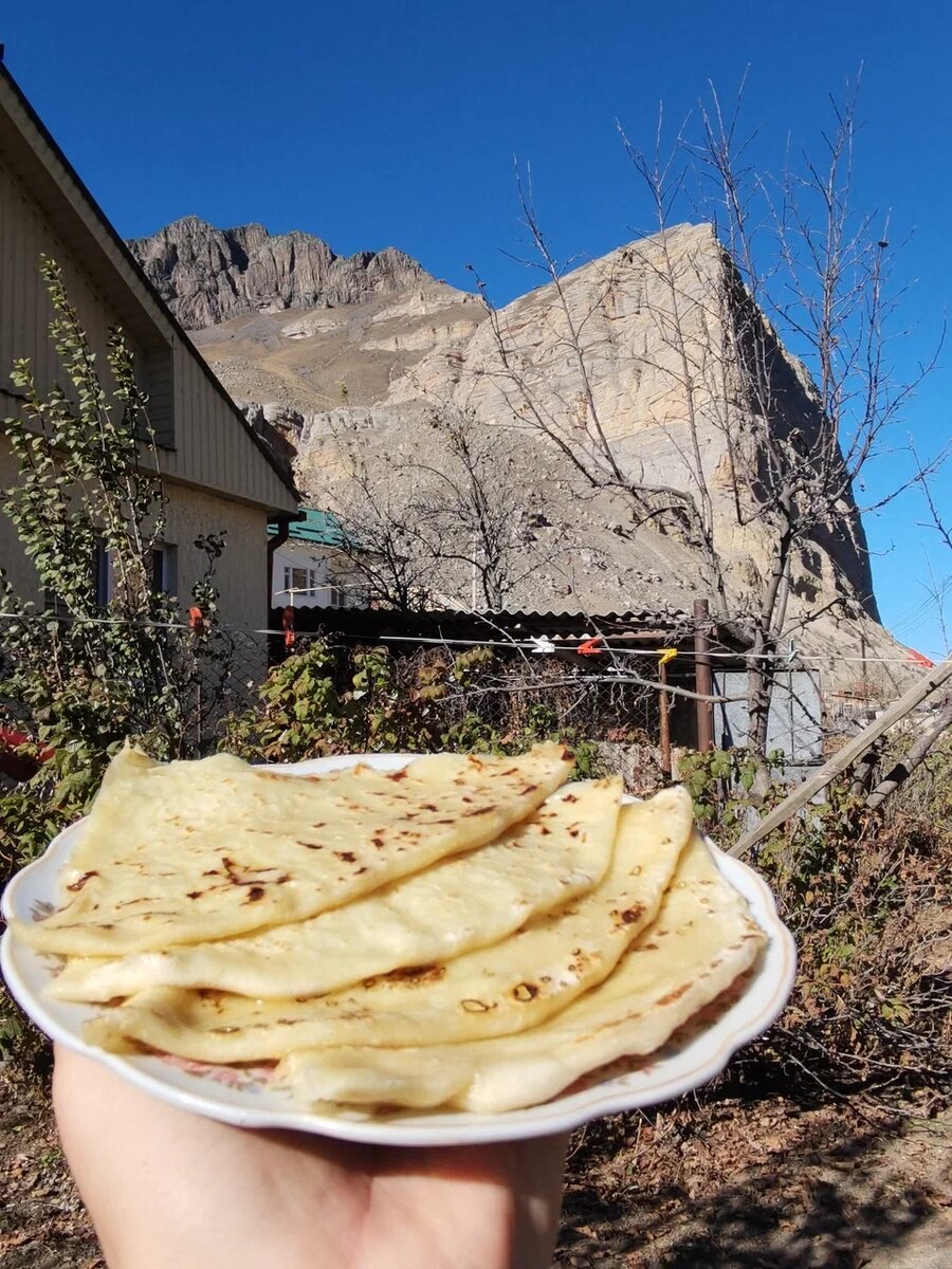 Этим рецептом поделилась хозяйка балкарского дома. Вам понадобятся: 🔹Мука 🔹Вода 🔹Соль 🔹Картошка и сыр для классической начинки Для теста берём теплую воду. Добавляем муку и соль. Тесто должно получиться эластичным и мягче начинки. Для начинки отвариваем картошку и пропускаем через мясорубку. Также через мясорубку пропускаем сыр. Если сыр солёный, то сначала 10 минут нужно подержать в теплой воде, чтобы вышла соль. Перемешиваем картошку и сыр, делаем небольшие шарики диаметром 5-7см. Для начинки с ботвой: свекольную ботву порезать, помять, отжать сок, добавить зеленый лук и сыр. Из кусочков теста размером с начинку делаем маленькие лепешки и оборачиваем в них картофельно-сырные шарики, чтобы те были полностью внутри. Края аккуратно закрываем. Тесто с «упакованной» в него начинкой раскатываем до диаметра сковороды и обжариваем с двух сторон без добавления масла. Когда хычин начнет раздуваться, переворачиваем руками. Обжаренный хычин выкладываем на блюдо, по желанию смазываем с