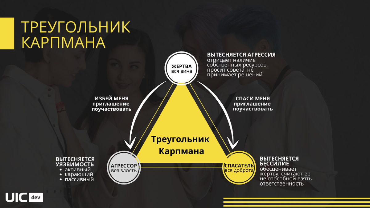 Во время работы корреспондентом я общалась с такими конфликтными собеседниками, какие вам, наверное, и не снились. Хотя в моей практике встречались и абсолютно неконфликтные люди. По крайней мере, они себя таковыми считали. Как найти общий язык с теми и другими? В чем разница между конфликтным и неконфликтным человеком? Как обычно, пример из жизни. У меня была ученица, которая сначала училась на «Дизайне речи», а потом по накатанной пошла на конфликтологию. Так делают многие. Но! Ее отзыв на практикум меня действительно удивил. Оказывается, девушка считала себя абсолютно неконфликтным человеком! И только после прохождения практикума поняла, что почти все конфликты в своей жизни провоцировала сама. До этого ей казалось, что в них виноваты другие люди. Как так получается? При работе в рамках конфликтологии мы опираемся на треугольник Карпмана и транзактный анализ. Подробнее об этом я писала в других статьях. Моя ученица думала, что она открыта к людям, может погасить любую ссору и да