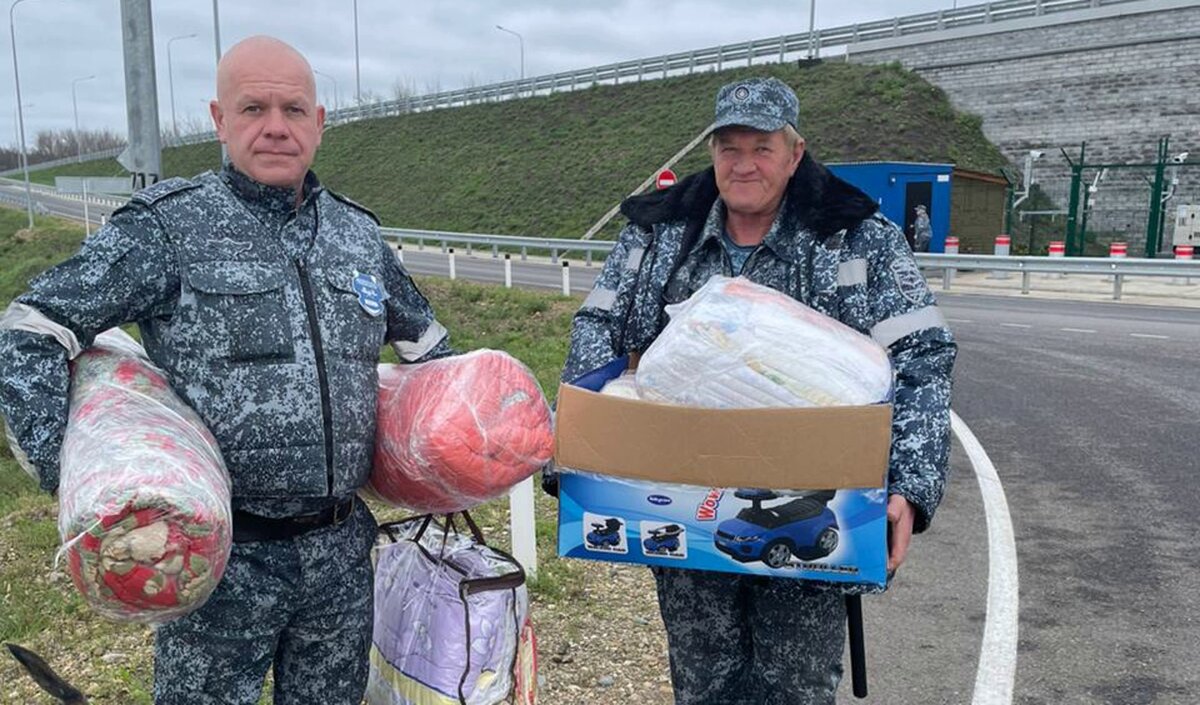 За год работники отделения «Медвёдовская» Краснодарского филиала ведомственной охраны Минтранса России отправили своим соотечественникам более 40 гуманитарных грузов. Вот и накануне новогодних праздников они собрали и доставили подарки жителям Запорожской области. В основном, это продукты домашнего приготовления, медикаменты, подарки детям, предметы первой необходимости и маскировочные сети, изготовленные своими руками.